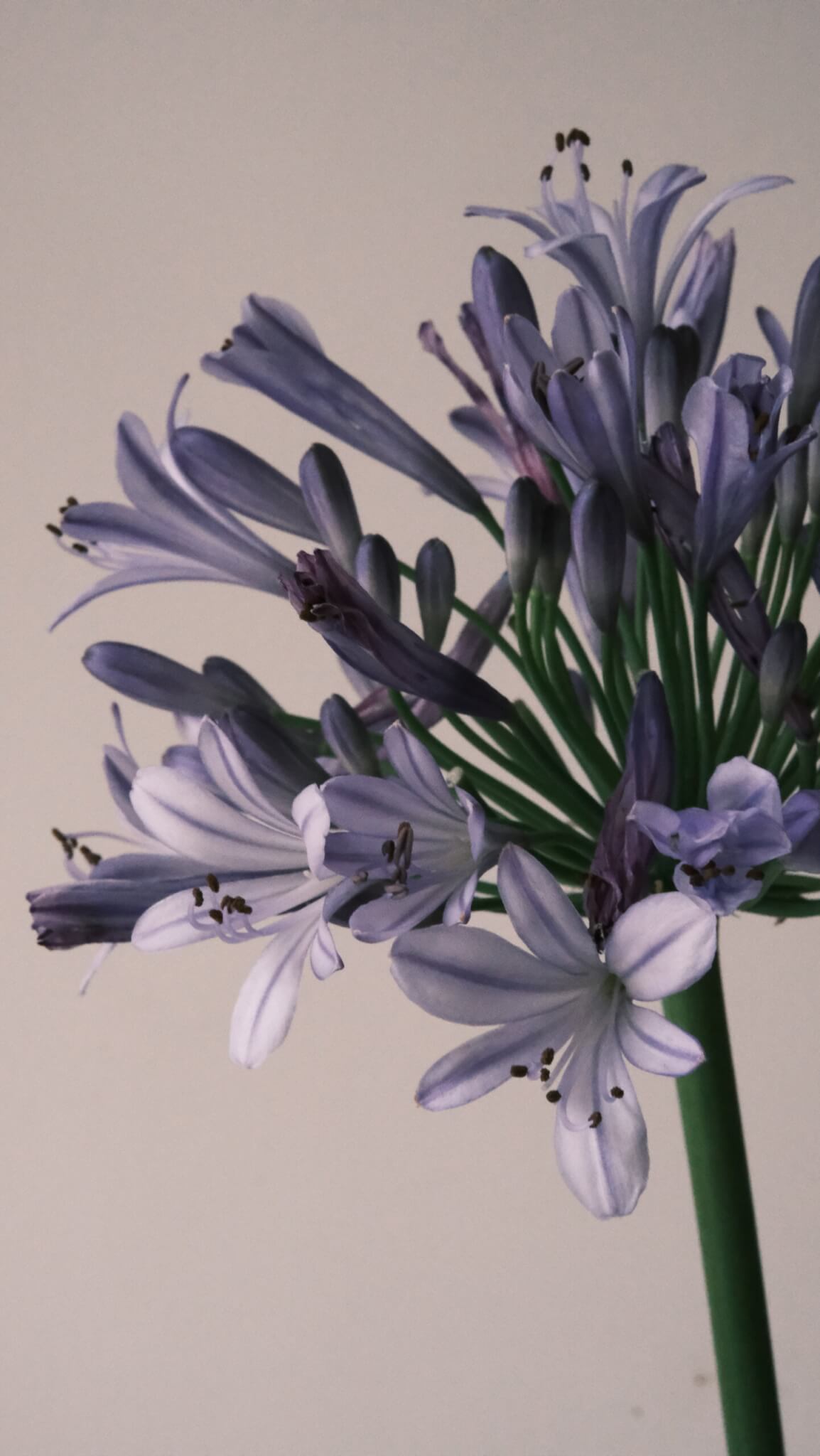 當百子蓮在十九世紀被引進英國貴族的花園時,它的學名 Agapanthus 引起了人們的騷動。在希臘文裡,Agape 意指「愛」,Anthos 則是「花」,合起來便是「愛之花」。在那樣一個連裙擺長度都被嚴格審視、情感只能被束腰勒緊的年代,男女間的獨處是禁忌,露骨的情書是罪過。於是,壓抑的紳士們選擇遞出一支百子蓮,將千言萬語折疊進紫色的花瓣裡,那是一封無聲的信,試探著對方是否聽見了隱晦的愛慕。
